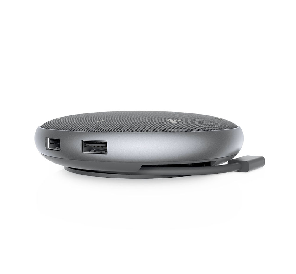 Sus numerosos puertos ofrecen una variedad de opciones de conectividad, mientras que su diseño de altavoz incorporado es ideal para realizar conferencias. Ahora puede cargar su laptop, estar conectado a una pantalla, a un teclado y a un mouse, y participar en una conferencia telefónica, todo al mismo tiempo.